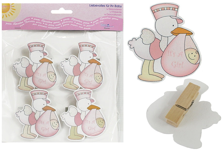 Bieco Klammern Storch rosa 4 Stück - ca 6,5x7cm