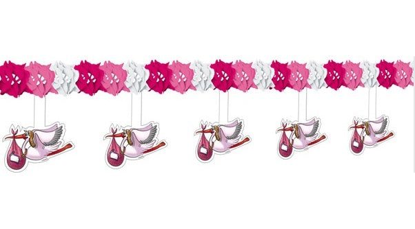 Girlande mit Storch Baby Mädchen - ca 4 meter